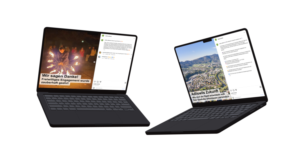 Adliswil ist in den letzten Jahren stark gewachsen, die Fluktuation in der Bevölkerung ist ziemlich hoch. Insbesondere Pendler:innen sowie junge Singles sind wenig verbunden mit der Stadt im Sihltal. Mit dem Ziel, alle Bevölkerungsgruppen zu erreichen und die Teilnahme am Stadtleben zu stärken, entschloss sich Adliswil, das Kommunikationskonzept weiterzuentwickeln. C-Factor führte eine Online-Befragung der Bevölkerung sowie der Mitarbeitenden der Stadtverwaltung durch, eruierte deren Bedürfnisse und lieferte Vorschläge zur Modernisierung der Gemeindekommunikation. Insbesondere mit Whatsapp und Instagram kommuniziert die Stadt Adliswil seit dem Frühling 2025 nun viel niederschwelliger, anschaulicher und auch für Fremdsprachige verständlicher. Das entsprechende Social-Media-Konzept entwickelte ebenfalls C-Factor, die Umsetzung übernahm das Kommunikationsteam der Stadt.