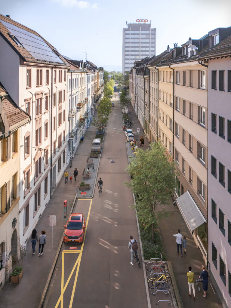 Die Lösung: Fotorealistische Vorher-Nachher-Visualisierungen von Quartierstrassen in Basel, Bern, Genf und Zürich. Sie zeigen eindrücklich, wie sich der öffentliche Raum verändert, wenn dank Carsharing weniger Parkplätze benötigt werden. Aus grauen Parkflächen werden lebendige Stadträume – eine Transformation, welche die Menschen sofort verstehen und die zum Dialog einlädt.